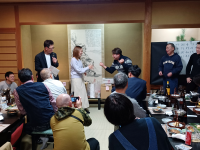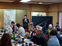社長より新年のご挨拶に続き、部長の乾杯の音頭でスタートしました。 おいしいコース料理に新レクチームによる恒例のビンゴ大会で、 景品を獲得した人から新年の抱負を述べてもらい、盛りあがる楽しい新年会でした。